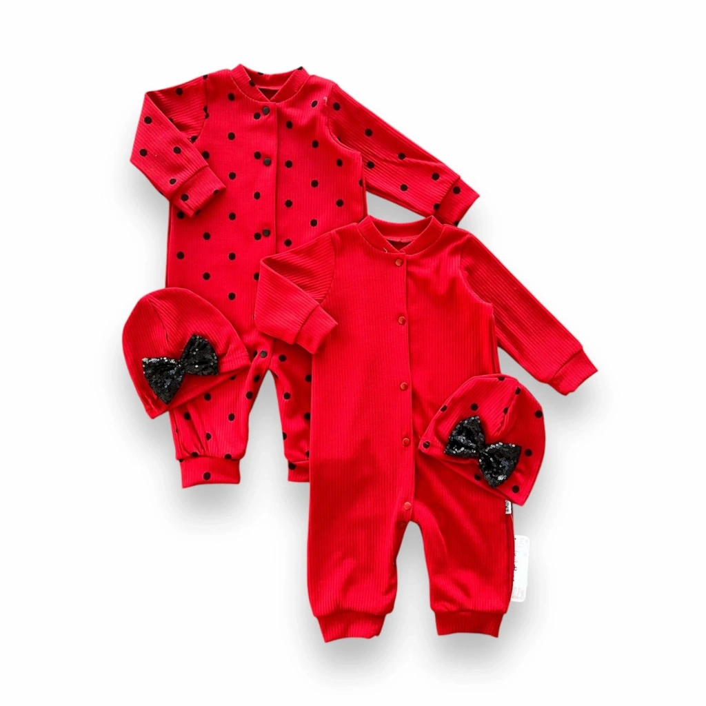 0-3 3-6 6-9 Ay Payetli Şapka Çıtçıt Kapamalı Puantiyeli Ve Düz 2 Li Kombin Kız Bebek Tulumları