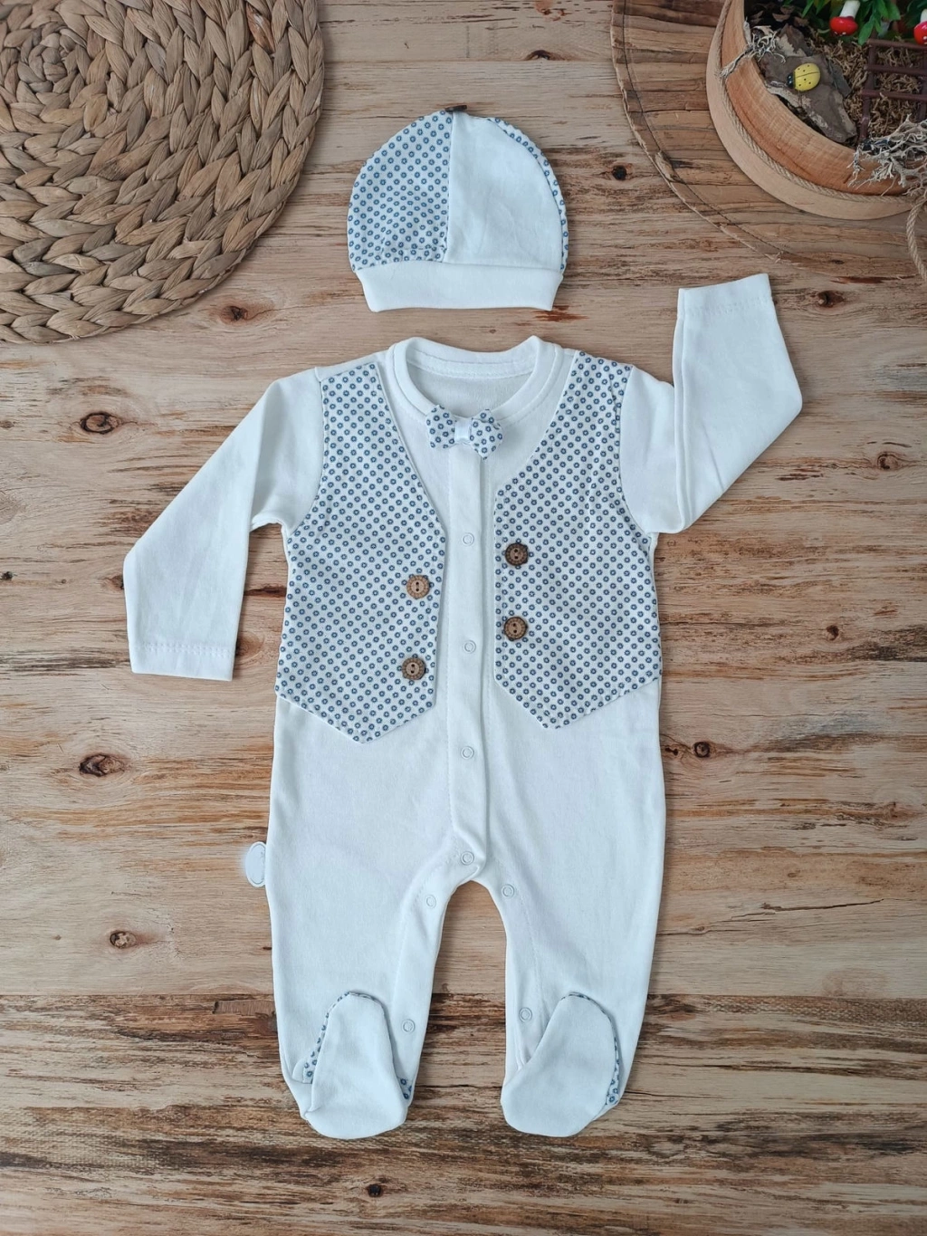 0-3 3-6 6-9 Ay Şapkalı Yelek Detaylı Boydan Çıtçıt Erkek Bebek Tulumu