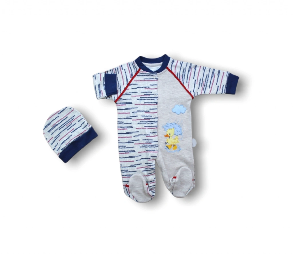 0-3 3-6 6-9 Ay Şemsiyeli Ördek Nakışlı Şapkalı Erkek Bebek Tulumu