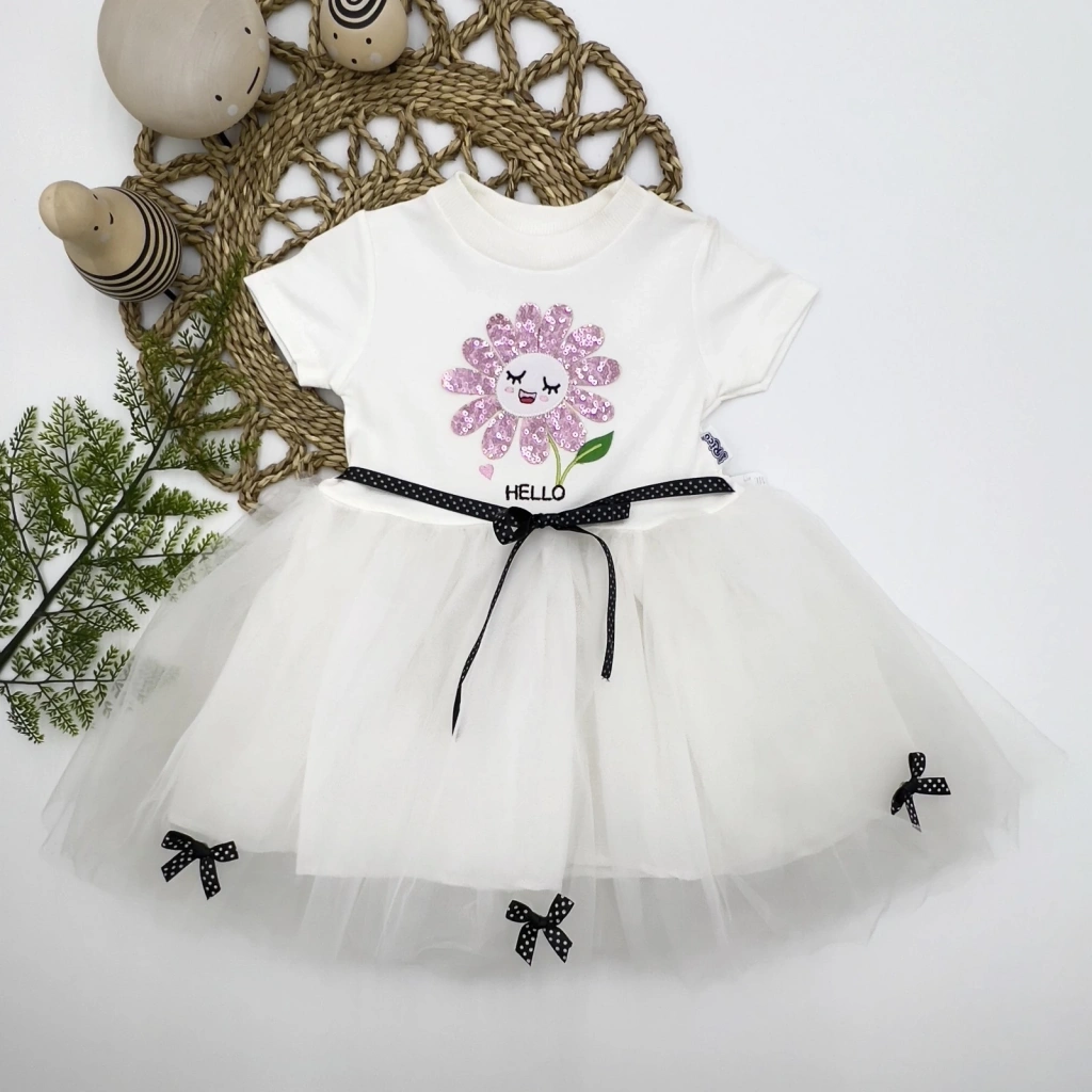 1-2-3 Yaş Payet Yapraklı Çiçek Nakışlı Astarlı Kız Bebek Tütü Elbisesi