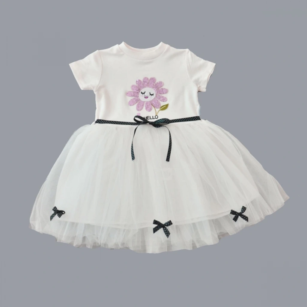 1-2-3 Yaş Tül Tokalı Bulut Civciv Ve Yıldız Nakışlı Kız Bebek Elbisesi
