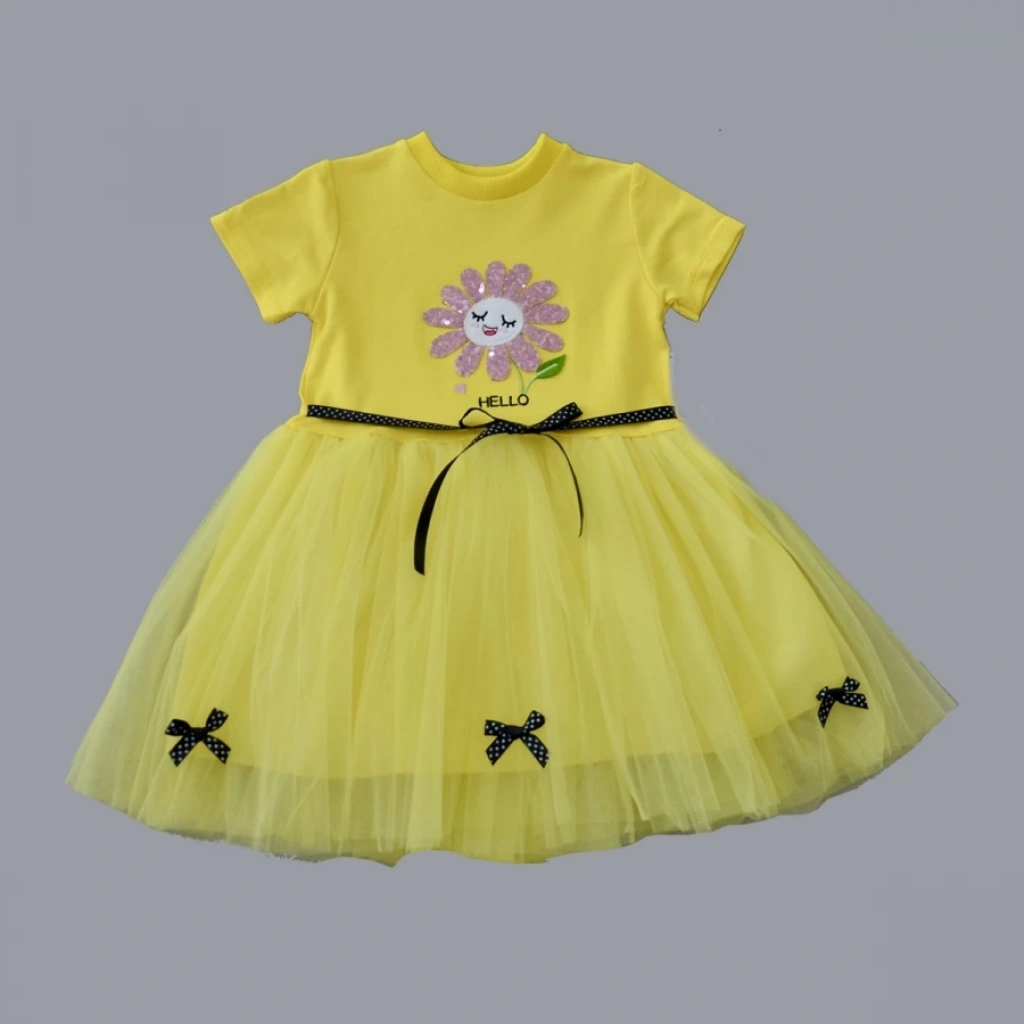 1-2-3 Yaş Tül Tokalı Bulut Civciv Ve Yıldız Nakışlı Kız Bebek Elbisesi