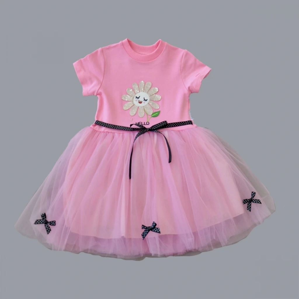 5-6-7 Yaş Flamingo Balerin Kız Baskılı Kurdela Kuşaklı Astarlı Kız Çocuk Tütü Elbise