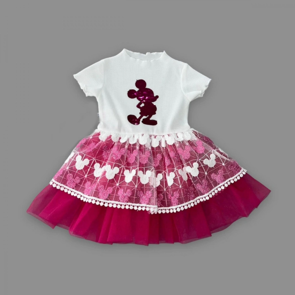 1-2-3 Yaş Payetli Baskılı Brode Etekli Kız Bebek Elbisesi