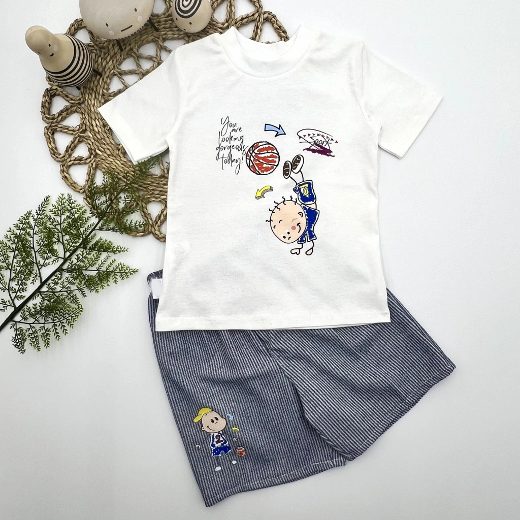 1-2-3 Yaş Topçu Erkek Çocuk Baskılı Şortlu Kısa Kollu Tişört 2li Erkek Bebek Takımı