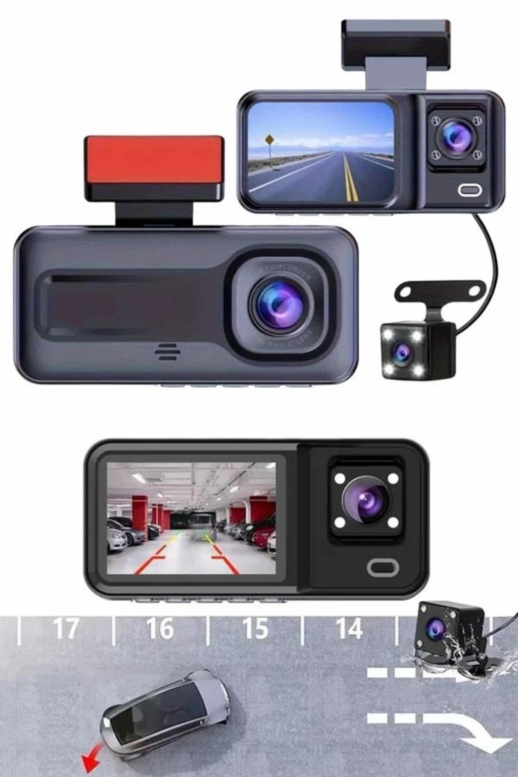 Çift Kameralı Araç İçi Kamera Full HD 1080P Gece Görüş ve Park Modlu