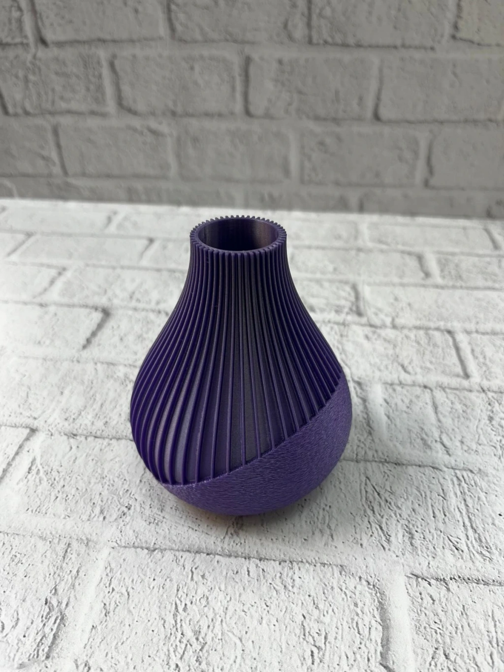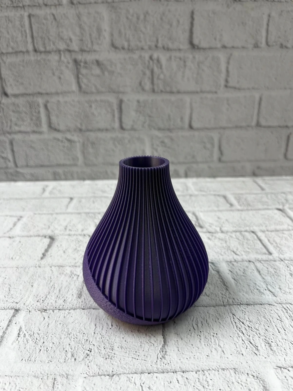 11 cm Mor Minimal Çizgili Vazo Masa Üstü Şık Dekor Objesi