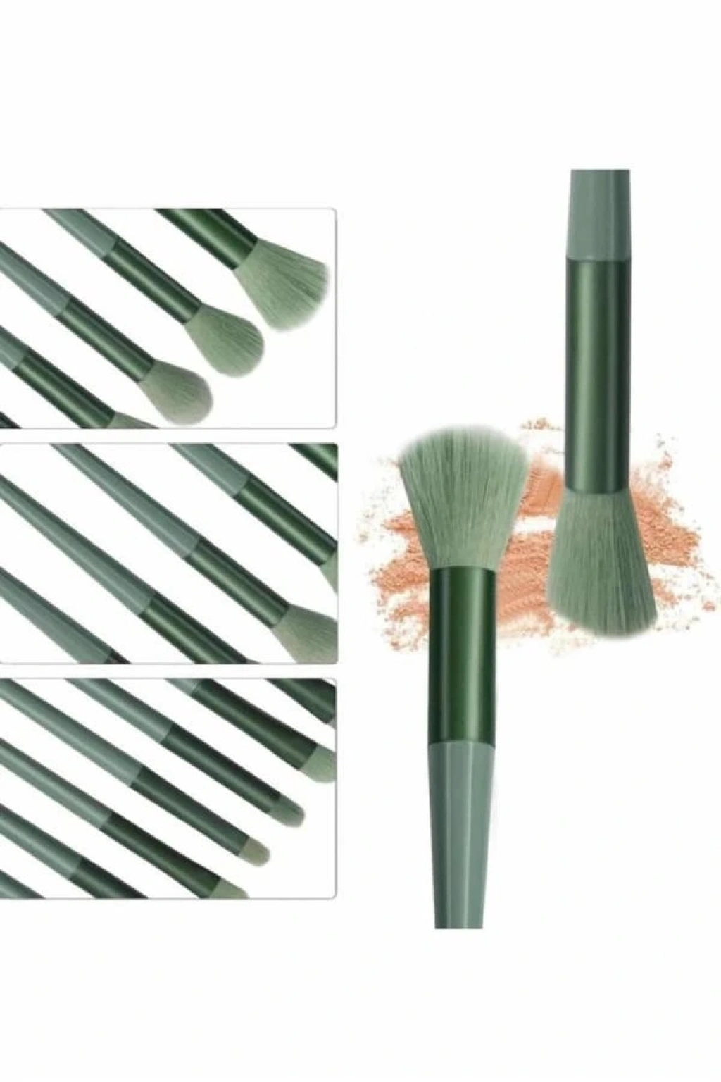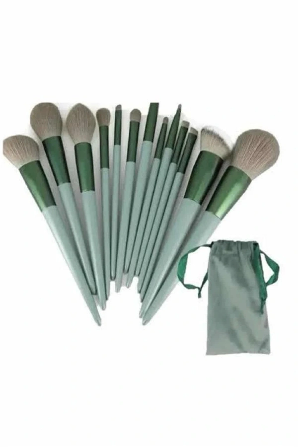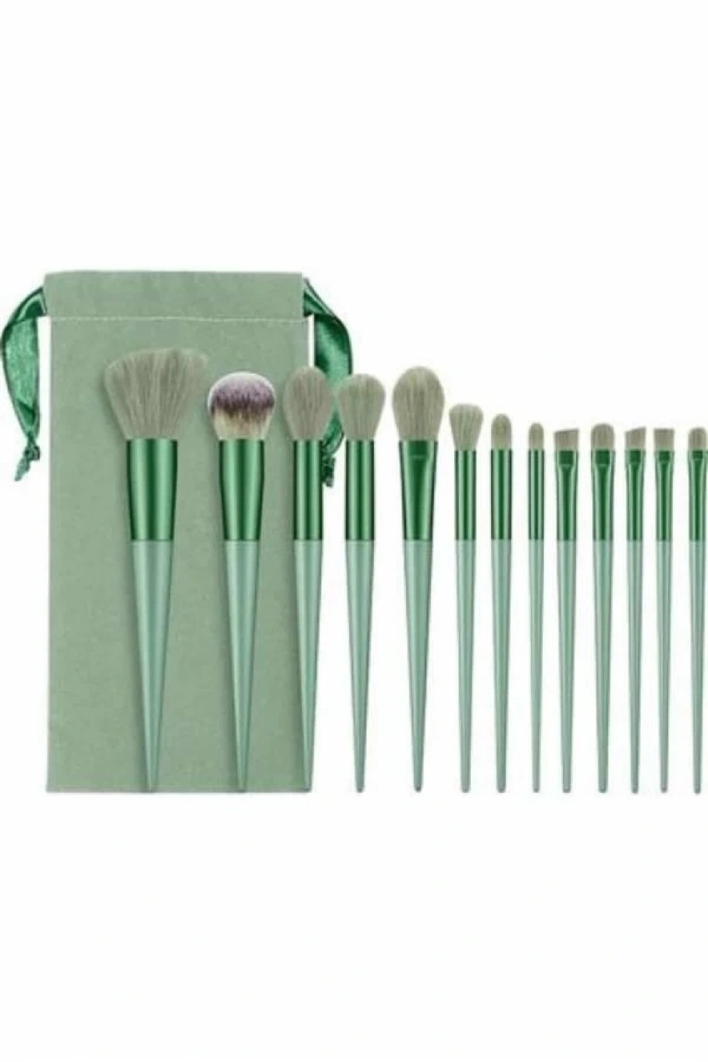 Makyaj Fırça Seti Yeşil 13 Parça Fondöten Fırçası Allık Fırçası Far Fırçası