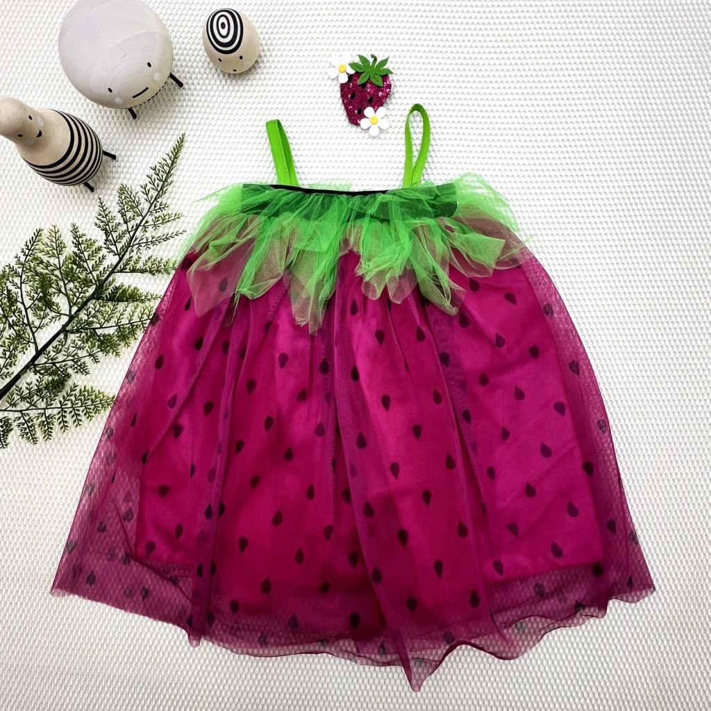 2-3-4 Yaş Askılı Çilek Kostüm Kız Çocuk Elbise