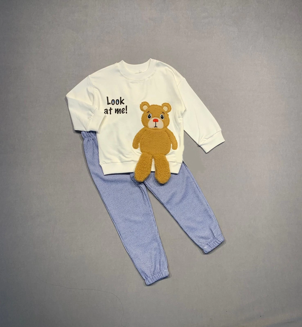 2-3-4 Yaş Ayıcık Sallanan Ayak Desenli Likra Penye Kumaş Sweat Pantolonlu Kız Erkek 2li Çocuk Takımı