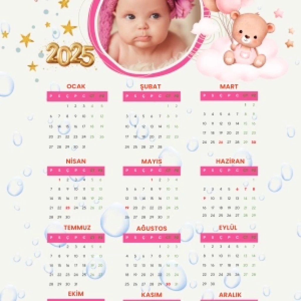 2025 Takvimi Kişiye Özel Kız Bebek Kalpli Emzikli Tasarım