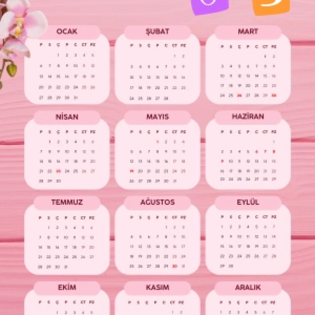 2025 Kişiye Özel Sosyal Medya Takvimi - Özel Günlerle Dolu Eğlenceli Duvar Afişi Çiçek