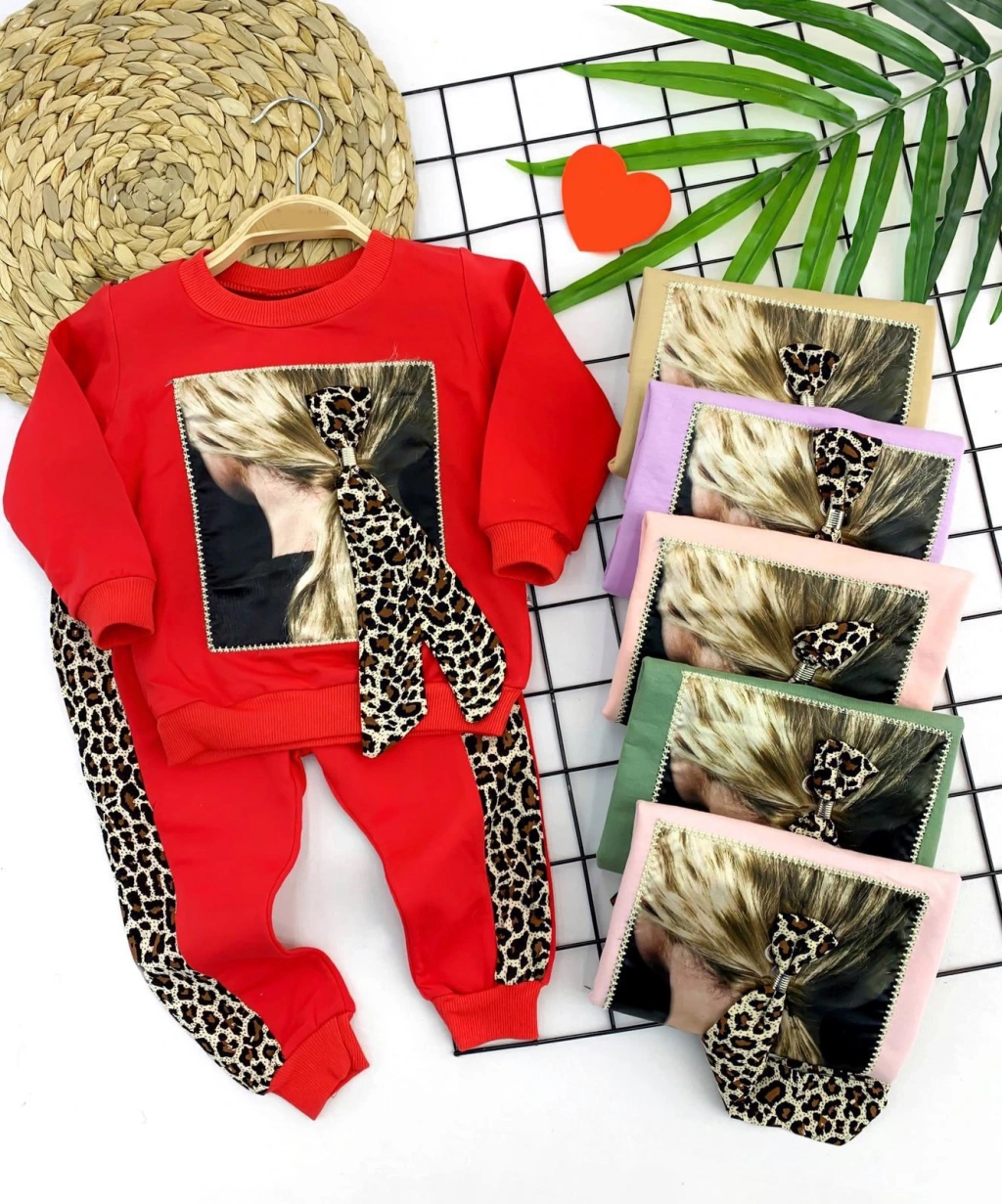 3-4-5-6 Yaş Lepoar Tokalı Leopar Şerit 2li Kız Çocuk Takımı