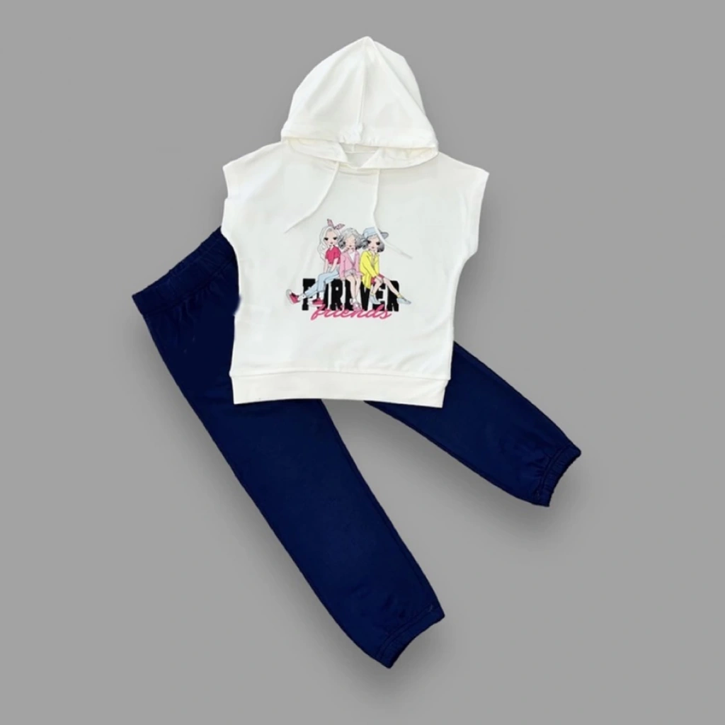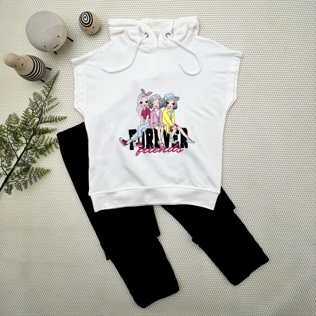 3-4-5 Yaş Forever Cici Kızlar Baskılı Kapşonlu 2li Kız Çocuk Takımı