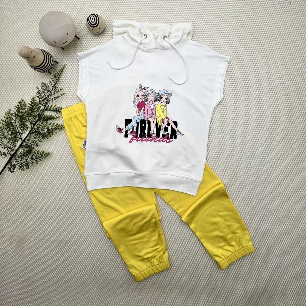3-4-5 Yaş Forever Cici Kızlar Baskılı Kapşonlu 2li Kız Çocuk Takımı