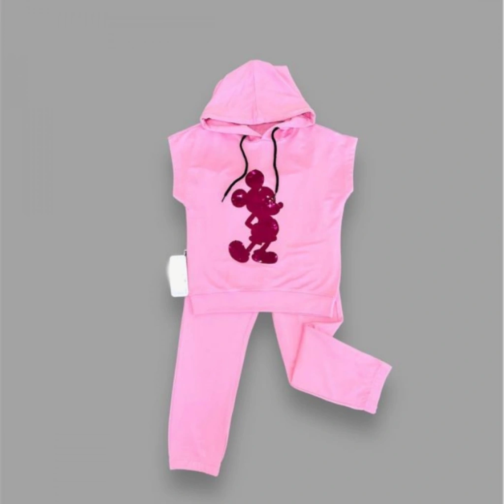 3-4-5 Yaş Kapşonlu Payetli Mickey Desenli Kısa Kol 2li Kız Erkek Çocuk Takımı
