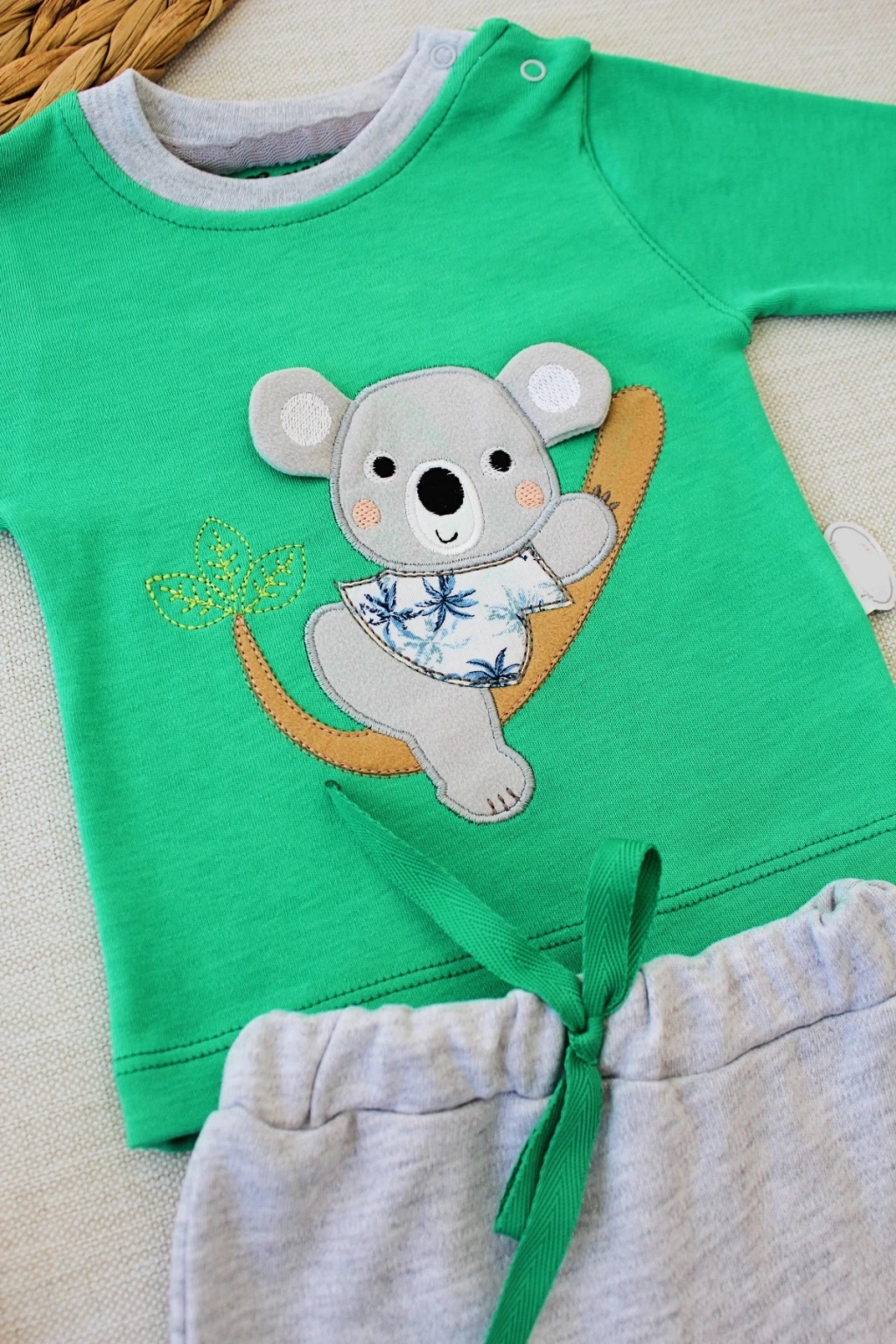 3-6 6-9 9-12 12-18 Ay Yavru Koala Nakışlı Uzun Kollu Sweat 2li Kız Erkek Bebek Takımı
