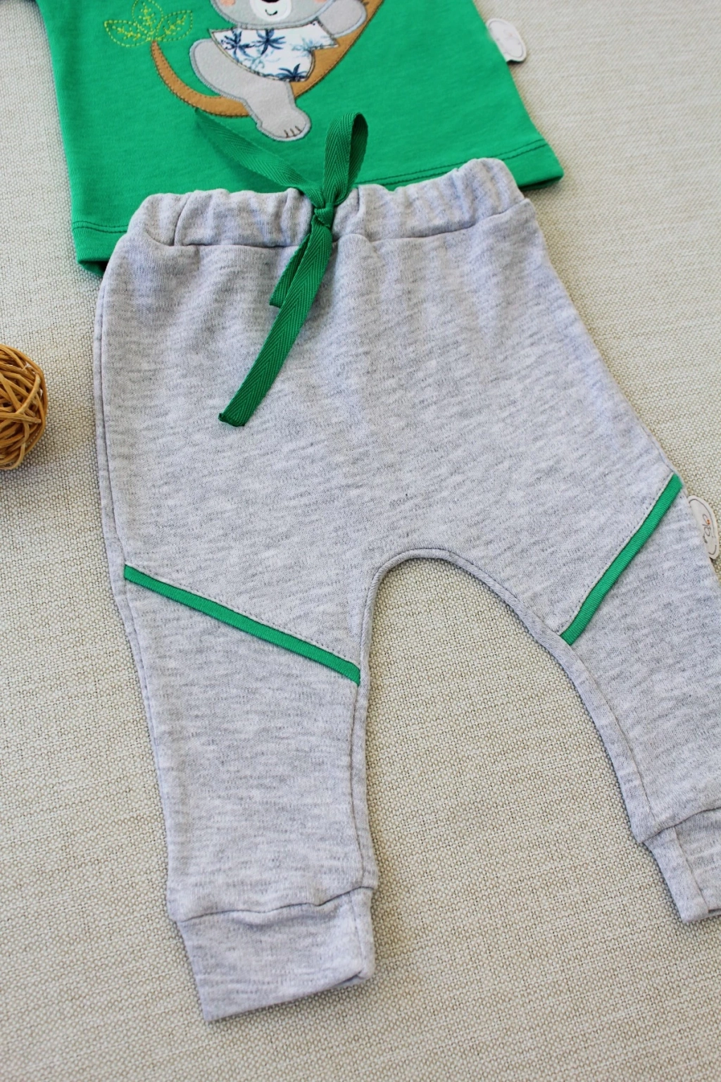 2-3-4 Yaş Ayıcık Sallanan Ayak Desenli Likra Penye Kumaş Sweat Pantolonlu Kız Erkek 2li Çocuk Takımı