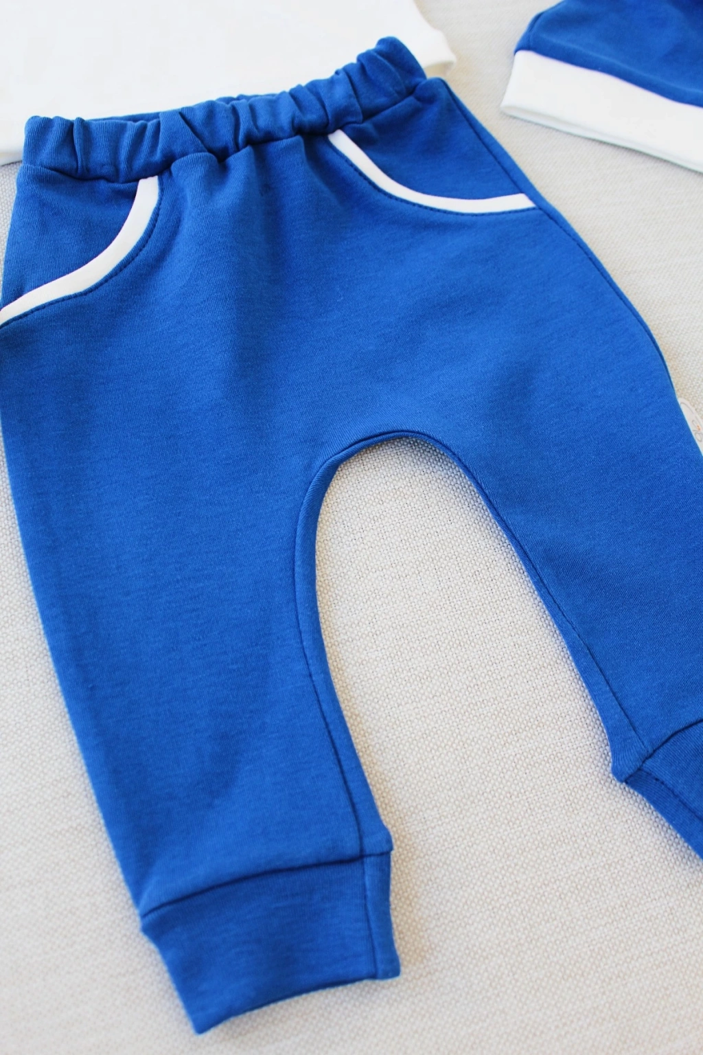3-6 6-9 9-12 Ay Efendi Nakışlı Cep Şapkalı Uzun Kollu Sweat 3lü Erkek Bebek Takımı