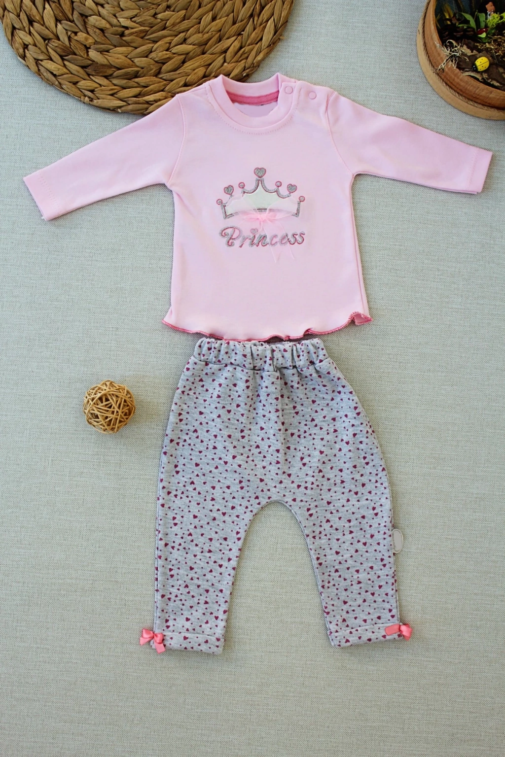 2-3-4 Yaş Ayıcık Sallanan Ayak Desenli Likra Penye Kumaş Sweat Pantolonlu Kız Erkek 2li Çocuk Takımı