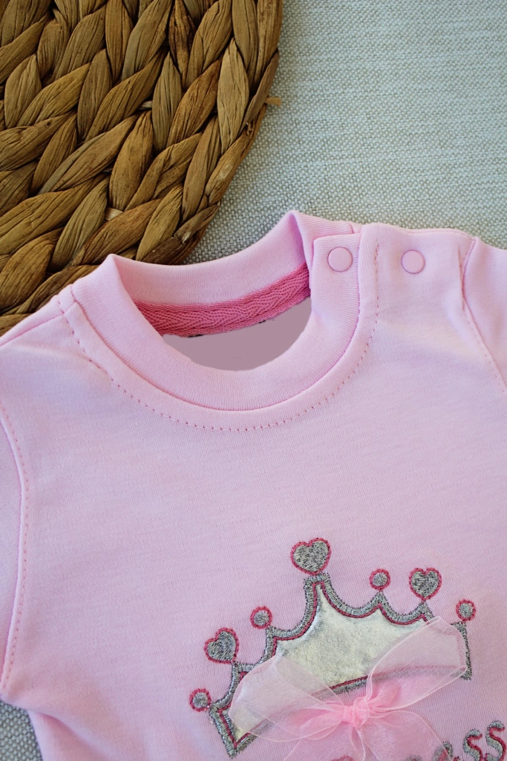 3-6 6-9 9-12 Ay Matmazel Yaka Fırfır Detaylı Bandanalı Uzun Kollu Sweat 3lü Kız Bebek Takımı