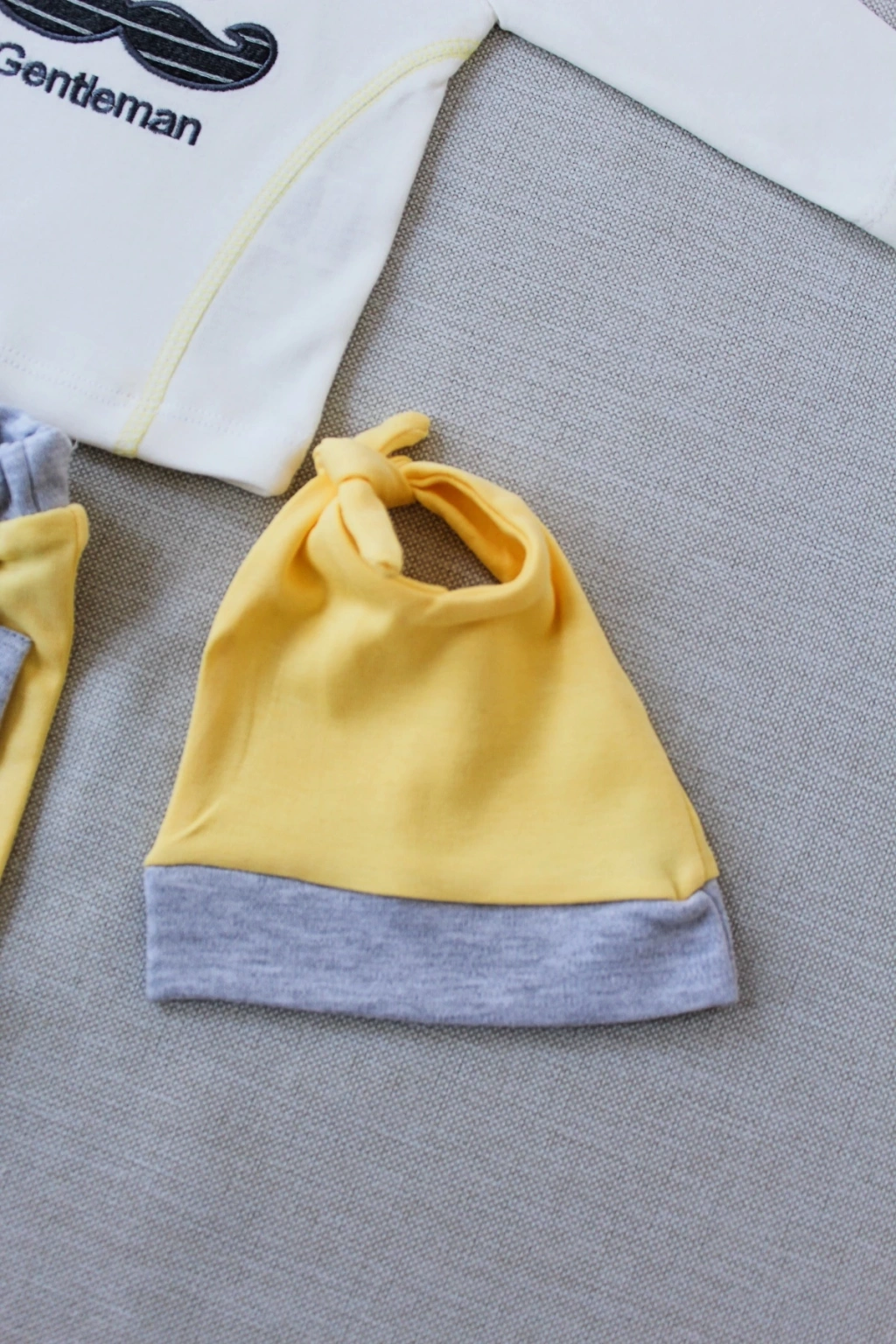 3-6 6-9 9-12 Ay Gentleman Erkek Nakışlı Şapkalı Uzun Kollu Sweat 3lü Erkek Bebek Takımı