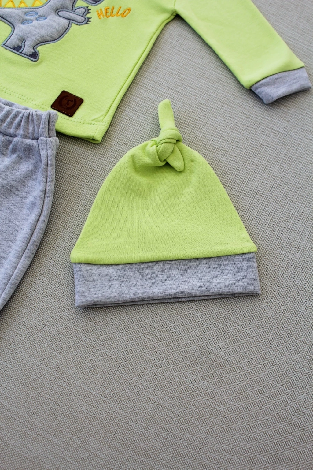 3-6 6-9 9-12 Ay Minik Dino Nakışlı Şapkalı Uzun Kollu Sweat 3lü Kız-erkek Bebek Takımı