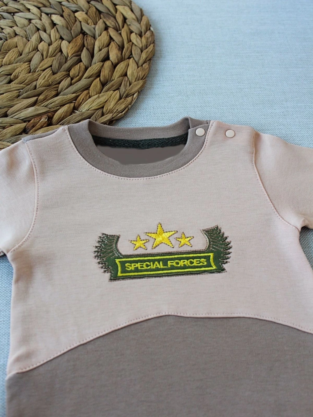 3-6 9-12 12-18 Ay Özel Kuvvetler Nakışlı Bere Şapkalı Kız Erkek Bebek Tulumu