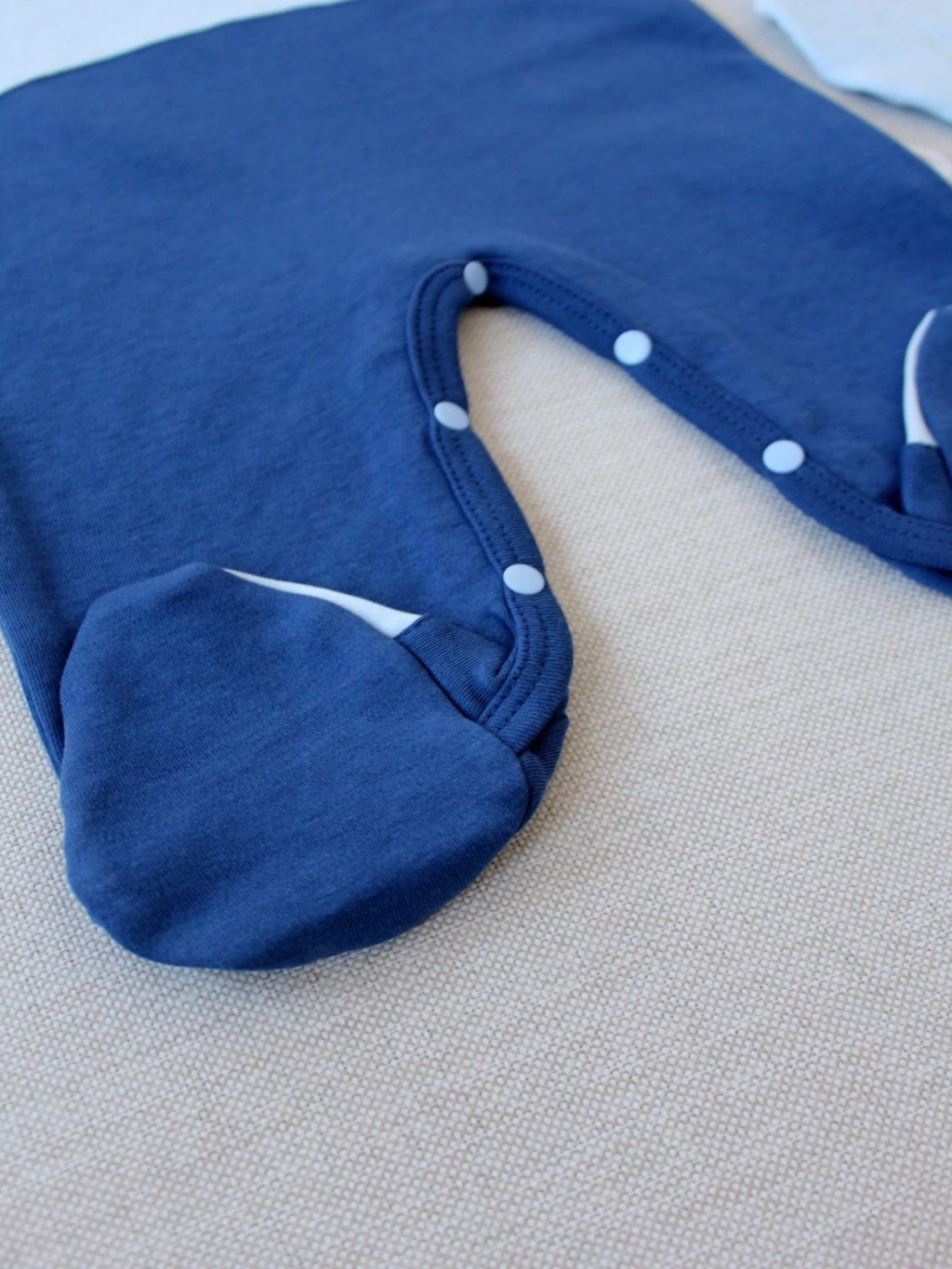3-6-9-12 Ay Papyon Detaylı Piti Kare Baskılı Salopet Görünümlü Erkek Bebek Tulumu