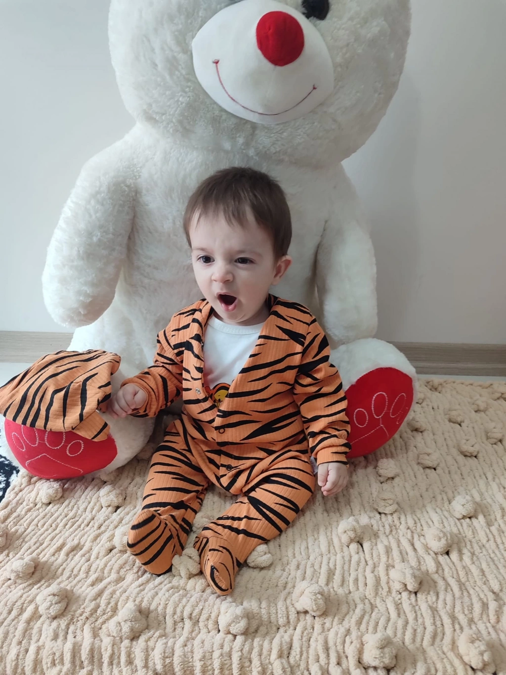 3-6-9-12 Ay Fermuar Kapamalı Kadife Kumaş İçi Tüylü Kız Erkek Bebek Tulumu
