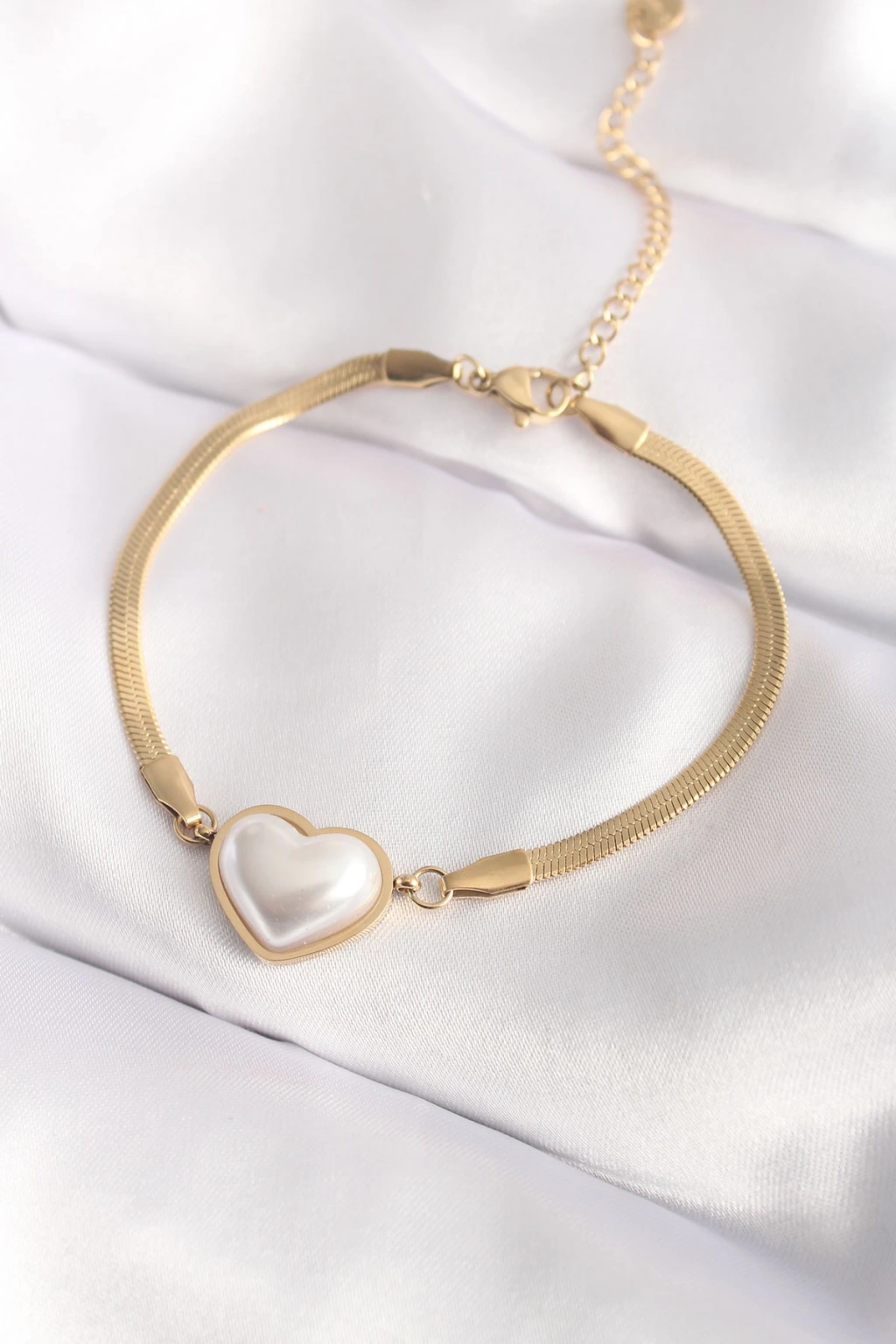 316L Çelik Gold Renk Bombeli Kalp Kadın Bileklik - TJ-BB6014
