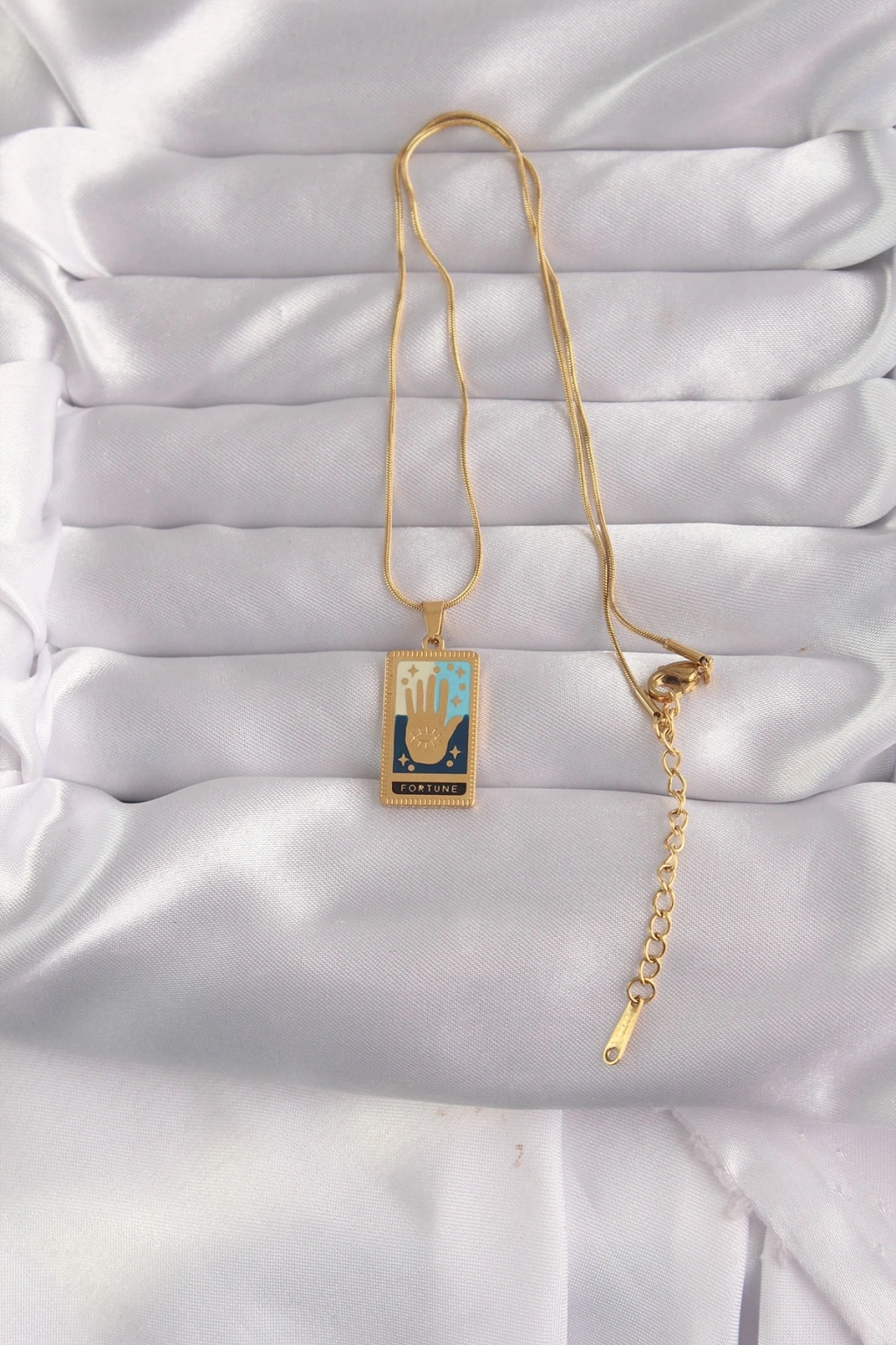 316L Çelik Gold Renk Karışık Mineli El Figür Tarot Kolye
