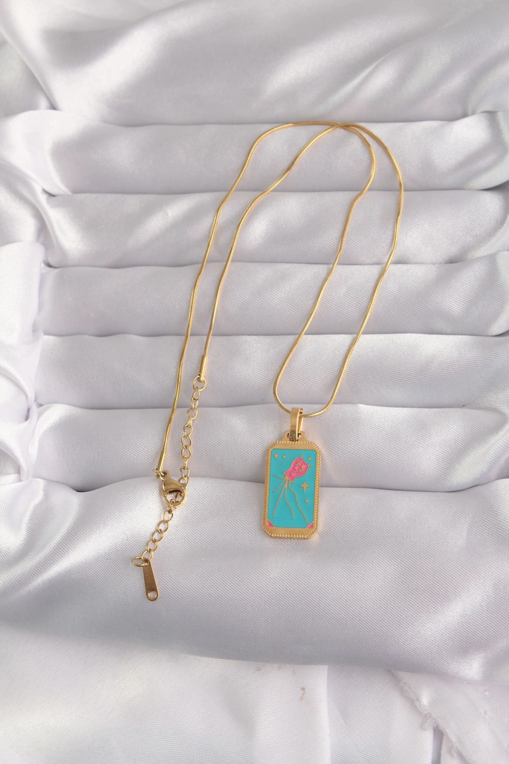 316L Çelik Gold Renk Mavi Mineli Tarot Kolye - TJ-BKO9030