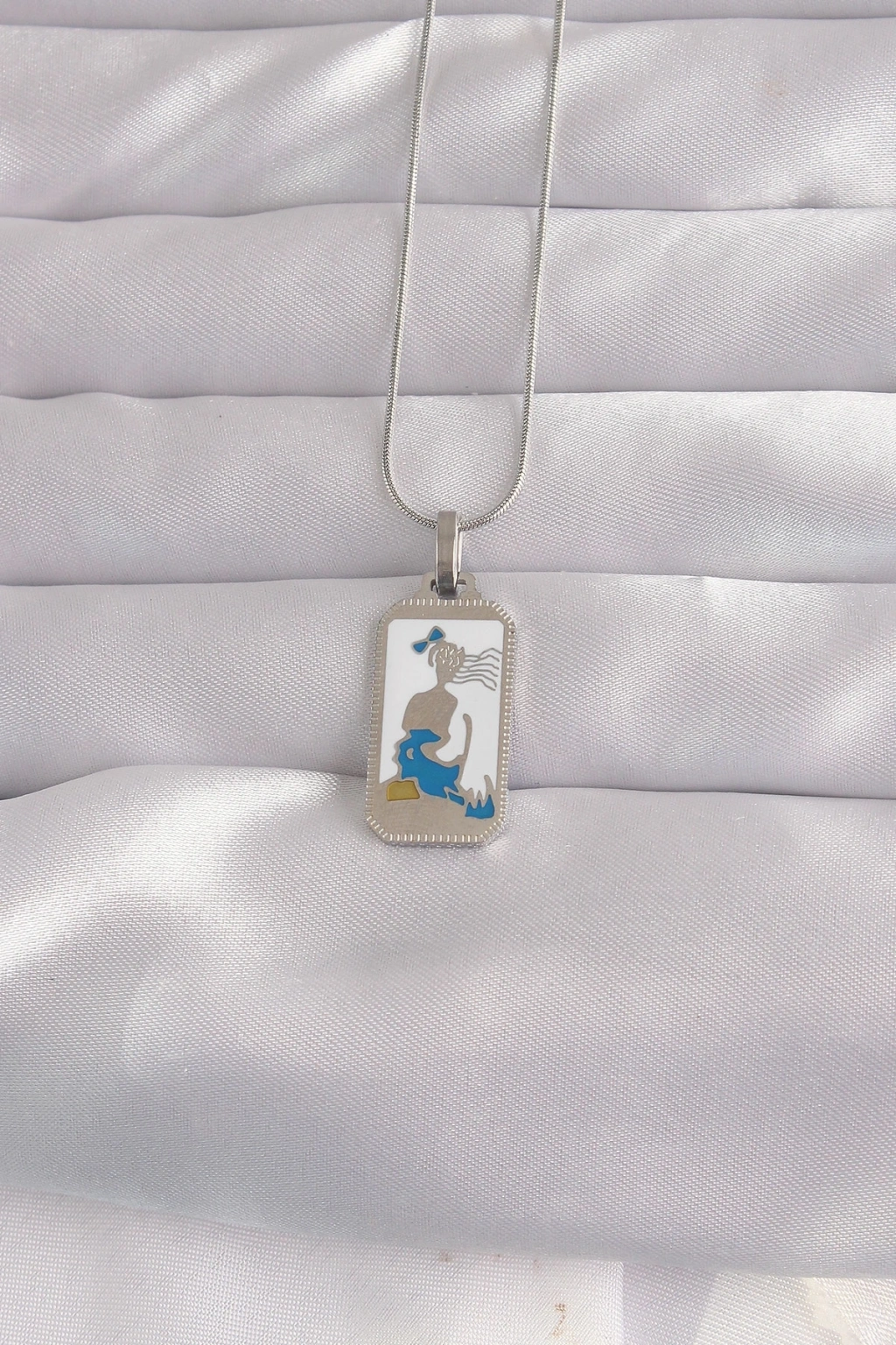 316L Çelik Gümüş Renk Beyaz Mineli Kız Figür Tarot Kolye