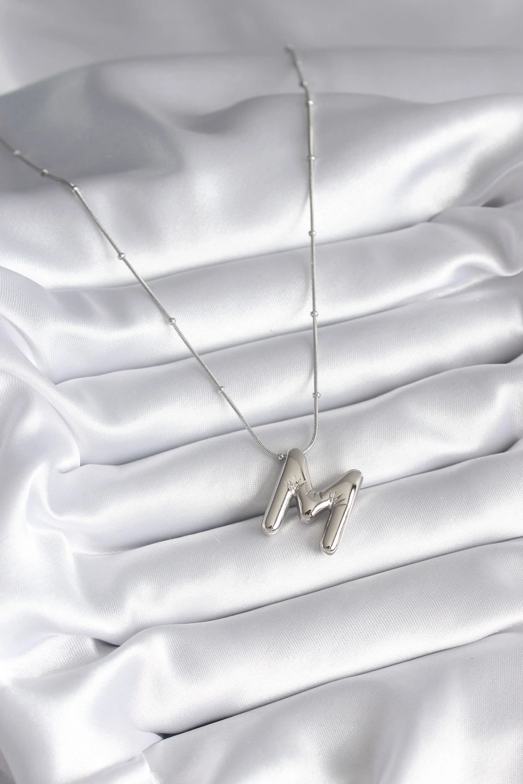 316L Çelik Gümüş Renk Bubble "M" Harf Model Kadın Kolye - TJ-BKO8307