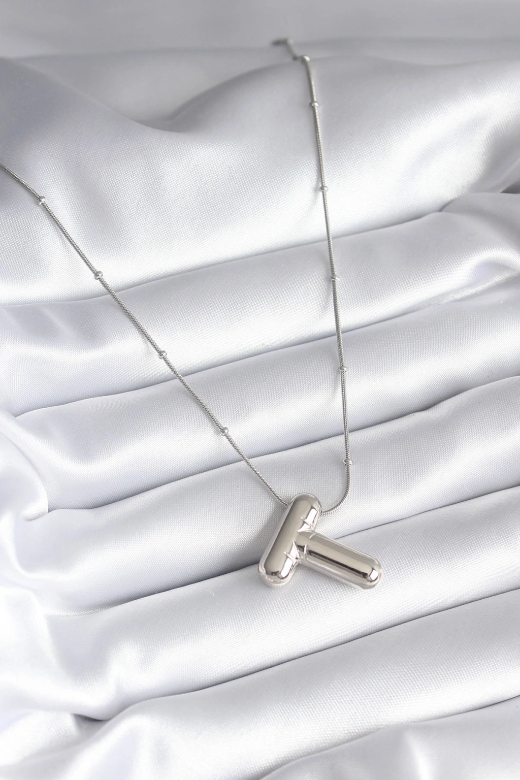 316L Çelik Gümüş Renk Bubble "T" Harf Model Kadın Kolye - TJ-BKO8295