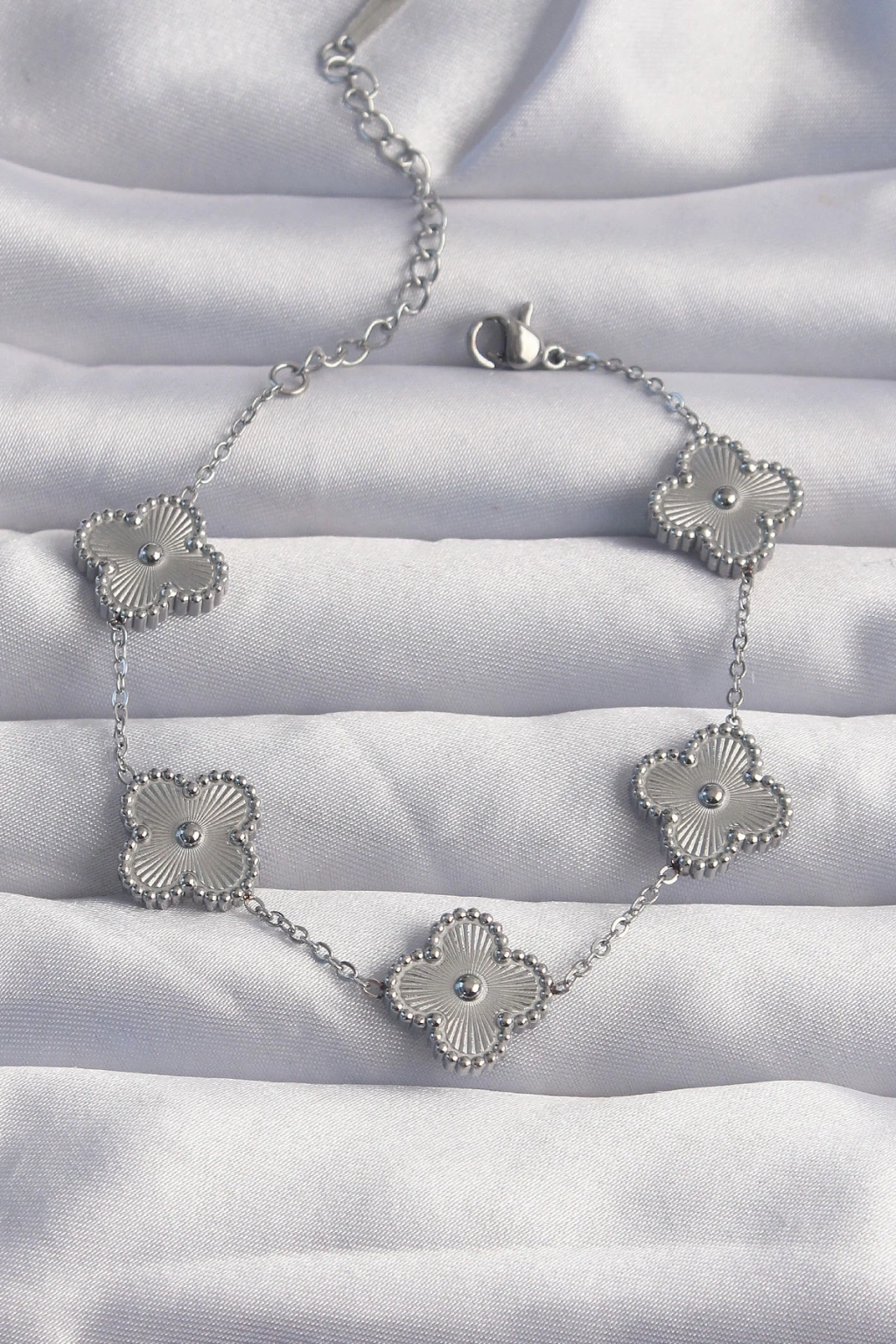 316L Çelik Gümüş Renk Motifli Yonca Bileklik
