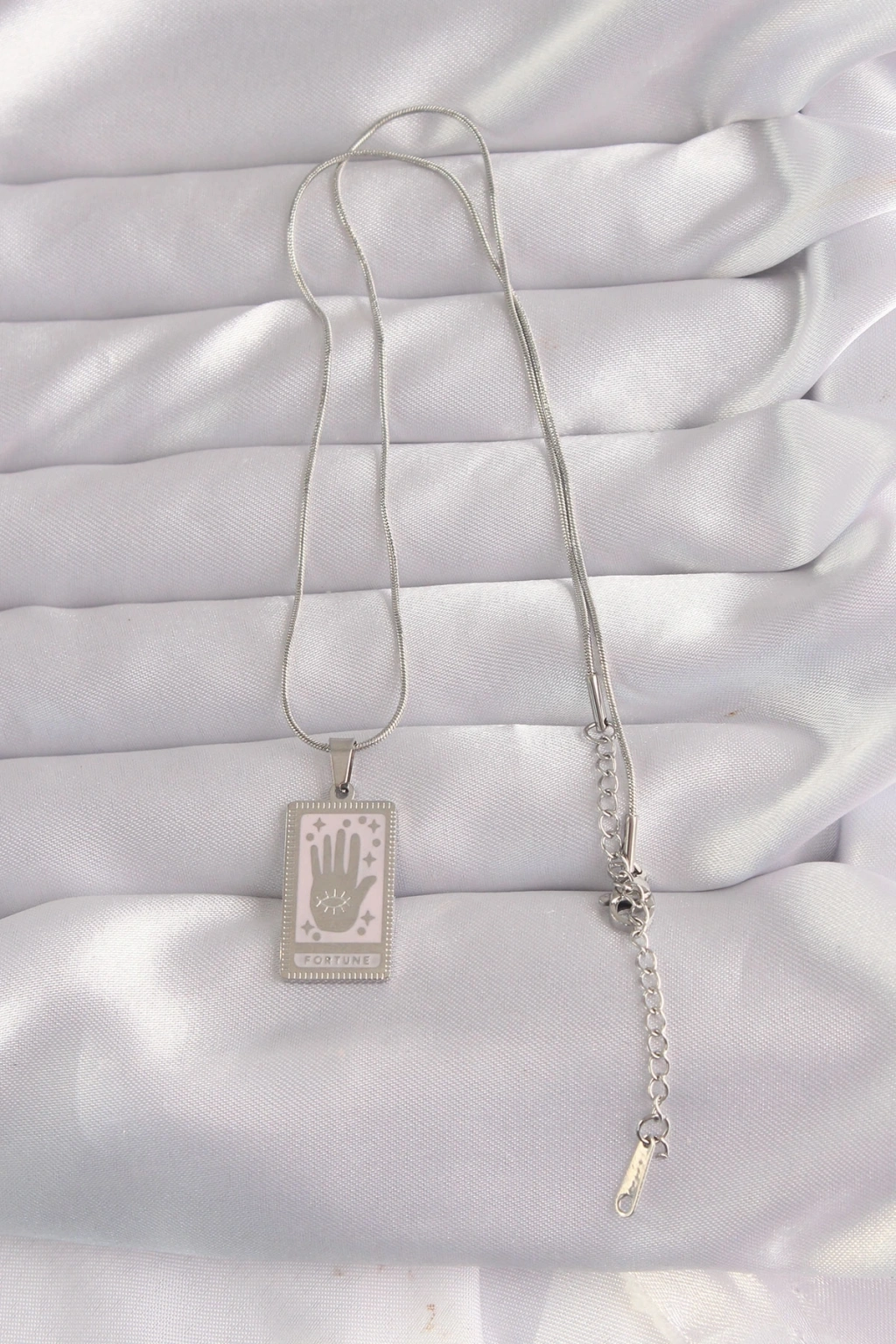 316L Çelik Gümüş Renk Pembe Mineli El Figür Tarot Kolye