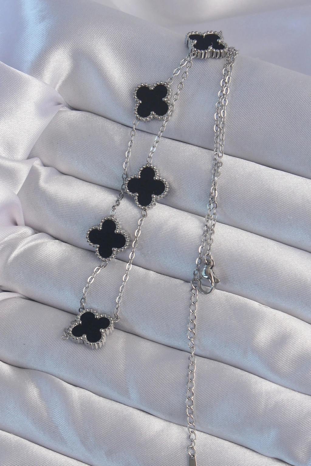 316L Çelik Gümüş Renk Siyah Mineli Yonca Kolye - TJ-BKO8997