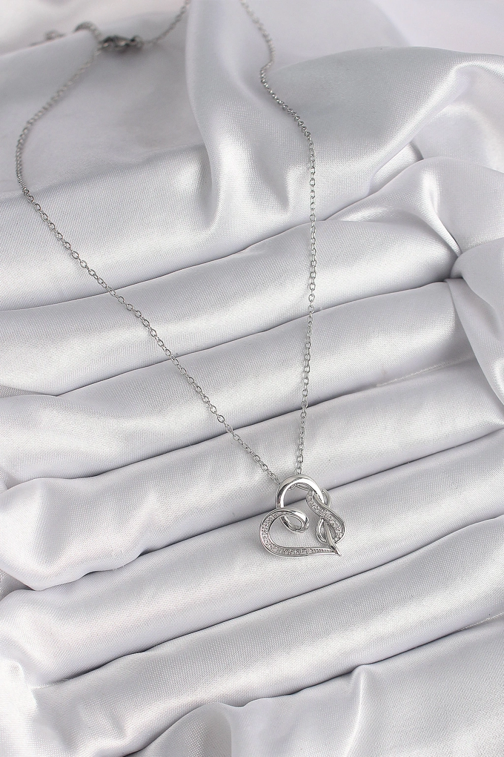 316L Çelik Gümüş Renk Zincir Zirkon Taş Detaylı Kalp Model Sonsuzluk Detay Kadın Kolye
