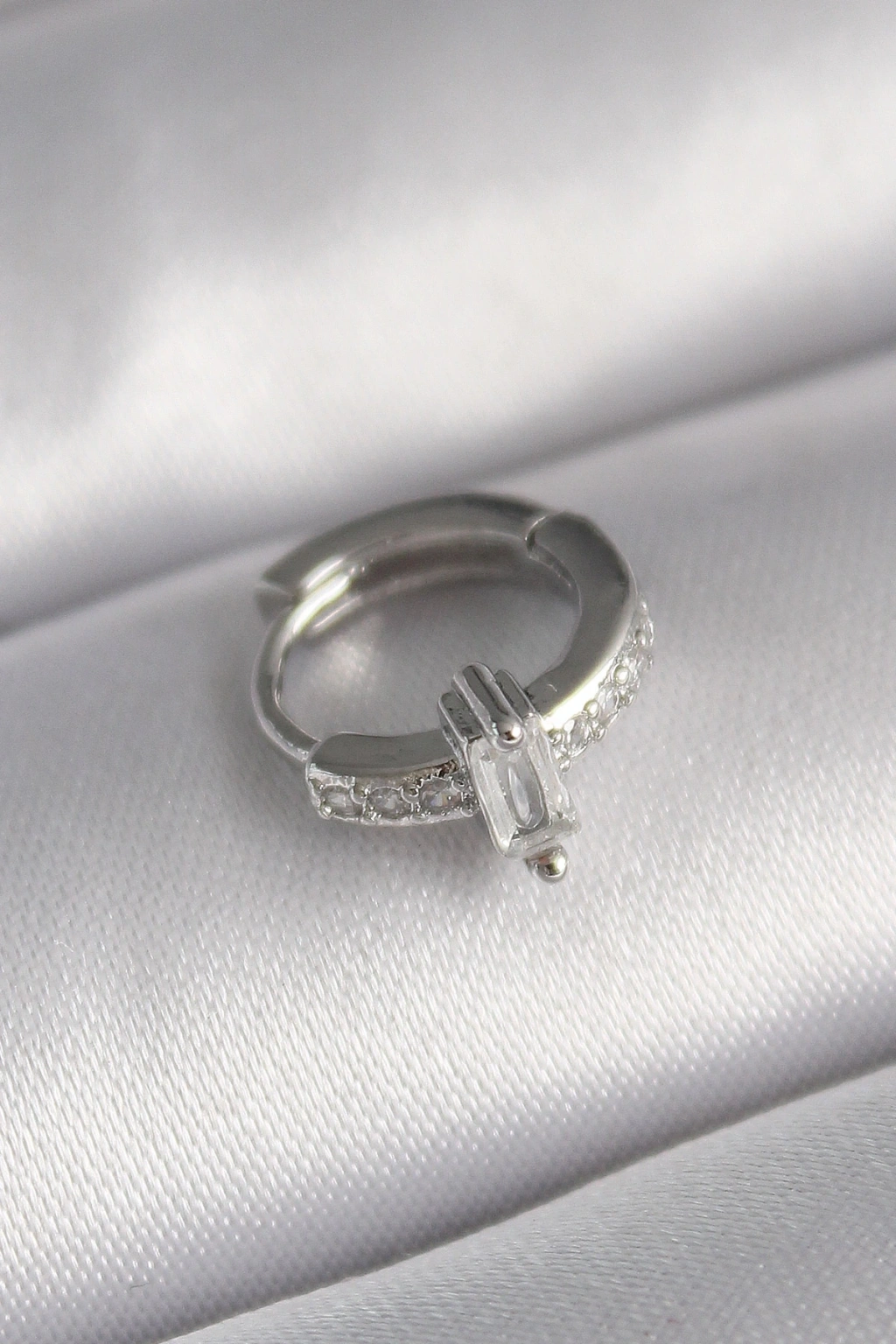 316L Çelik Gümüş Renk Zirkon Taşlı Tragus Piercing