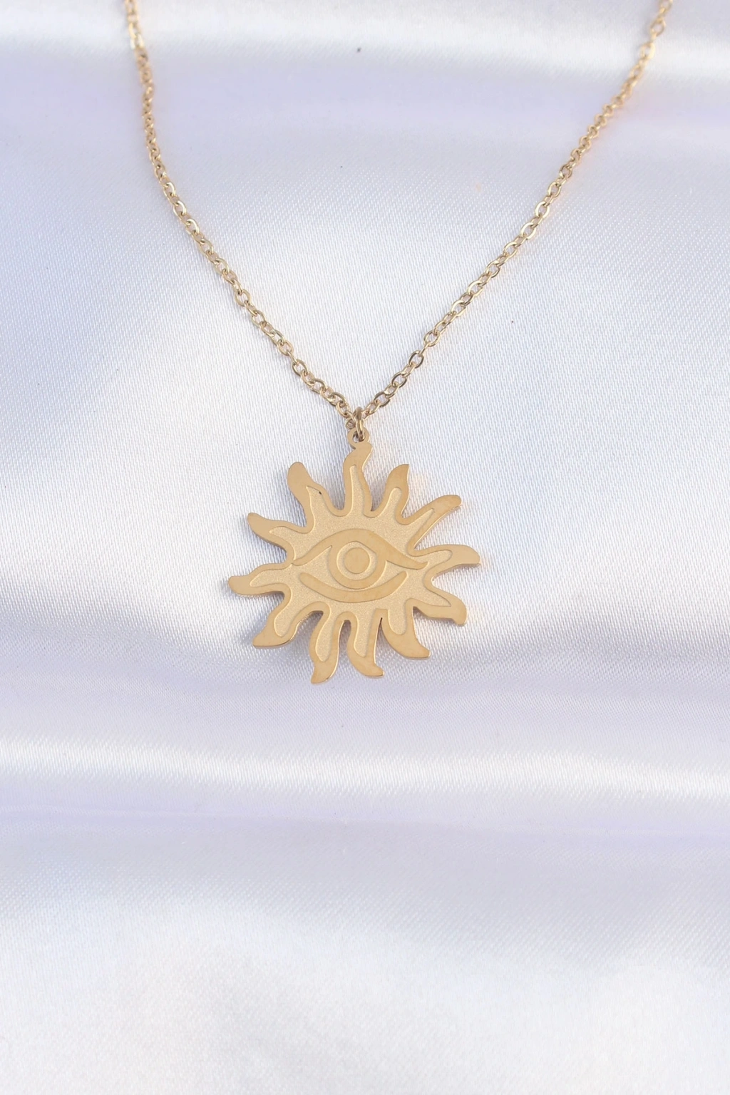 316L Çelik Zincir Gold Renk Göz Güneşi Tasarımlı Kolye