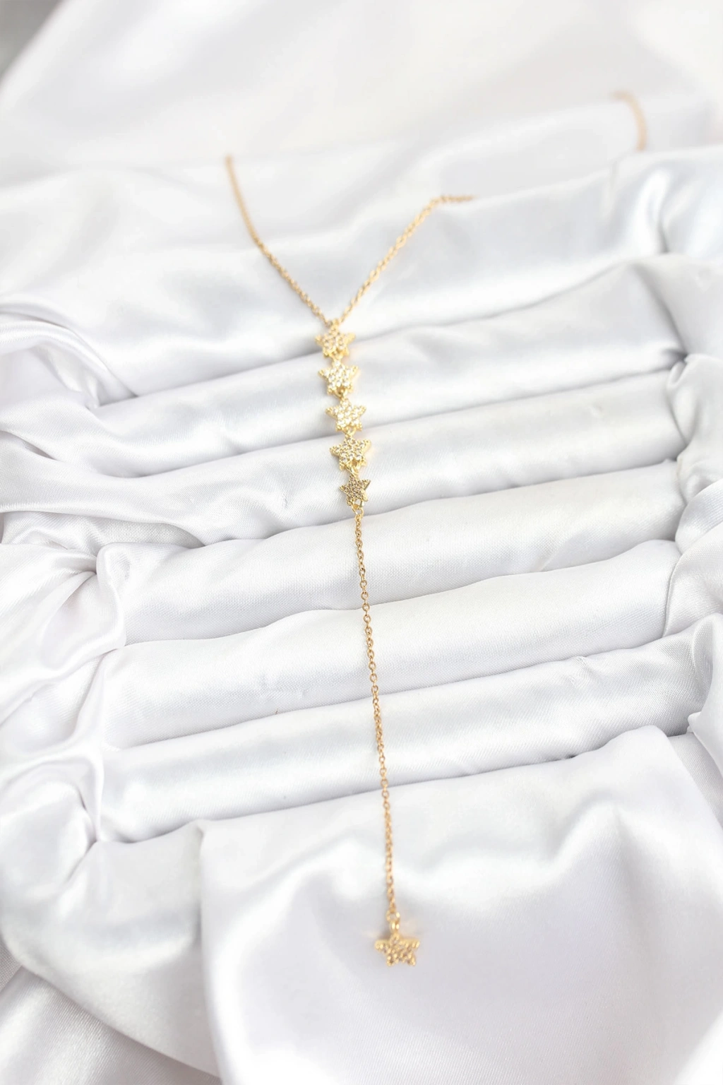 316L Çelik Zincir Gold Renk Yıldız Model Y Kolye - TJ-BKO10660