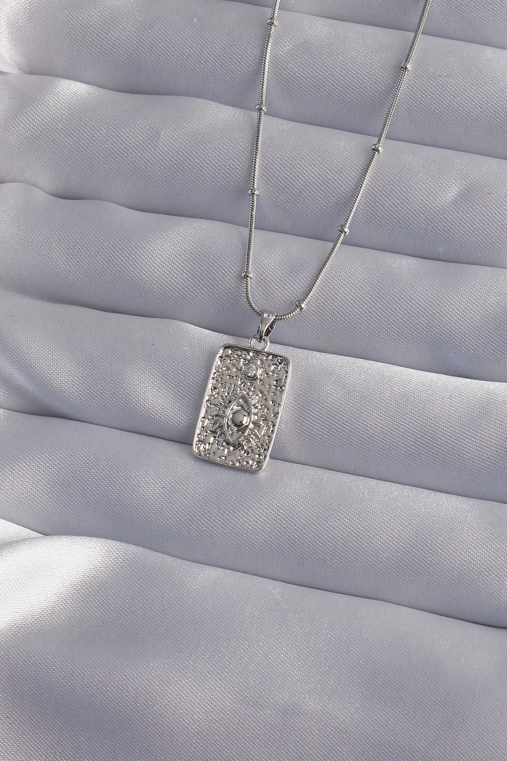 316L Çelik Zincir Gümüş Renk Lazer İşlemeli Göz Figür Tarot Kolye - TJ-BKO9018