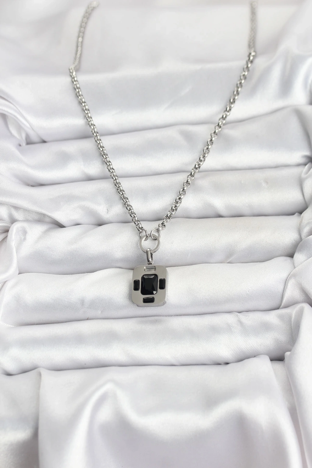 Pirinç Gümüş Renk Minimal Charmlı Kadın Kolye - TJ-BKO10804