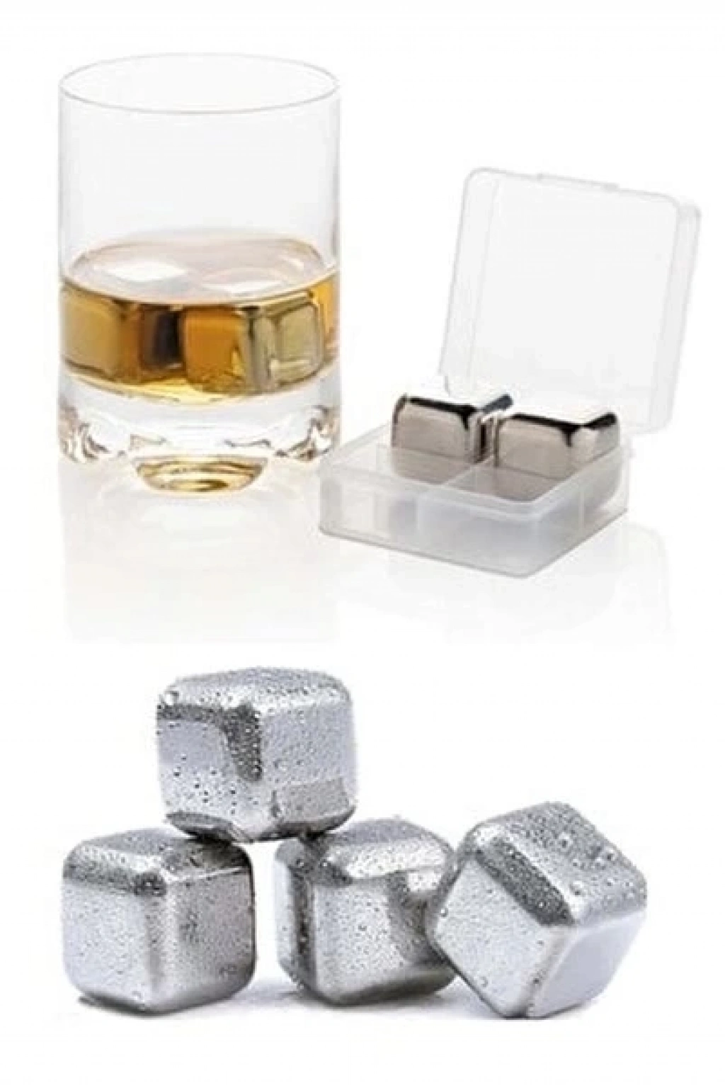 4'lü Çelik Metal Kaplama Viski Taşı Soğutma Buz Küpü
