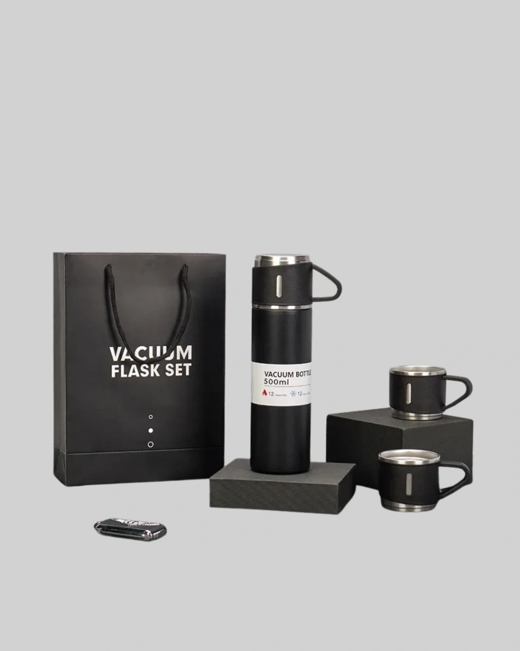 Isıyı Uzun Süre Koruyan 500 ml Termos Seti | Çelik Gövde, 2 Bardaklı, Hediye Kutulu