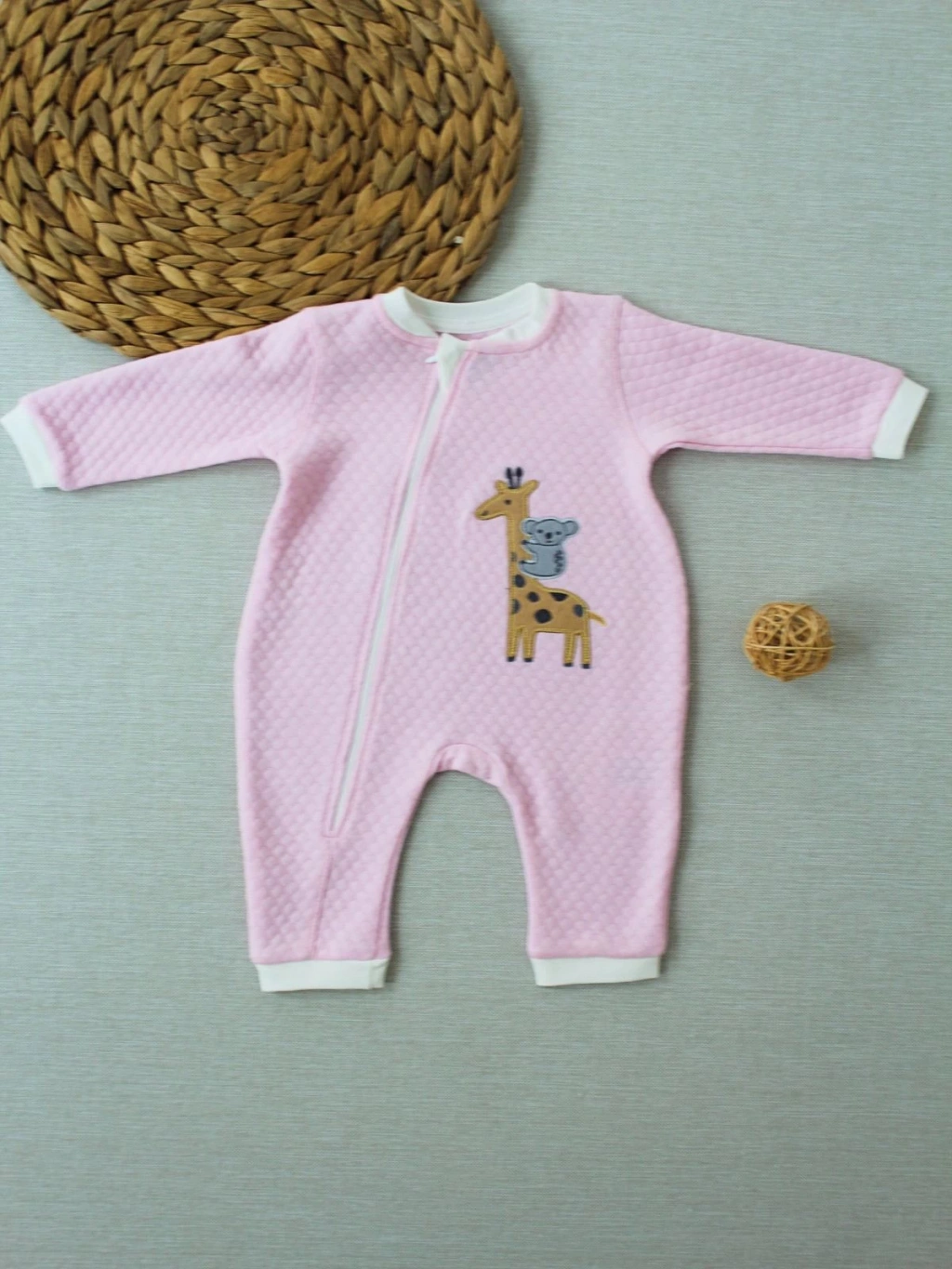 6-9 12-18 18-24 24-36 Ay Animal Nakışlı Bal Peteği Kumaş Es Fermuarlı Kız Bebek Tulumu