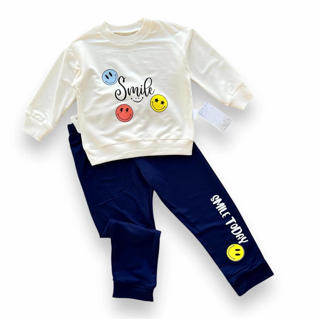 6-9-12-18 Ay Emoje Baskılı Pamuk Penye Kumaş Erkek Bebek Takımı