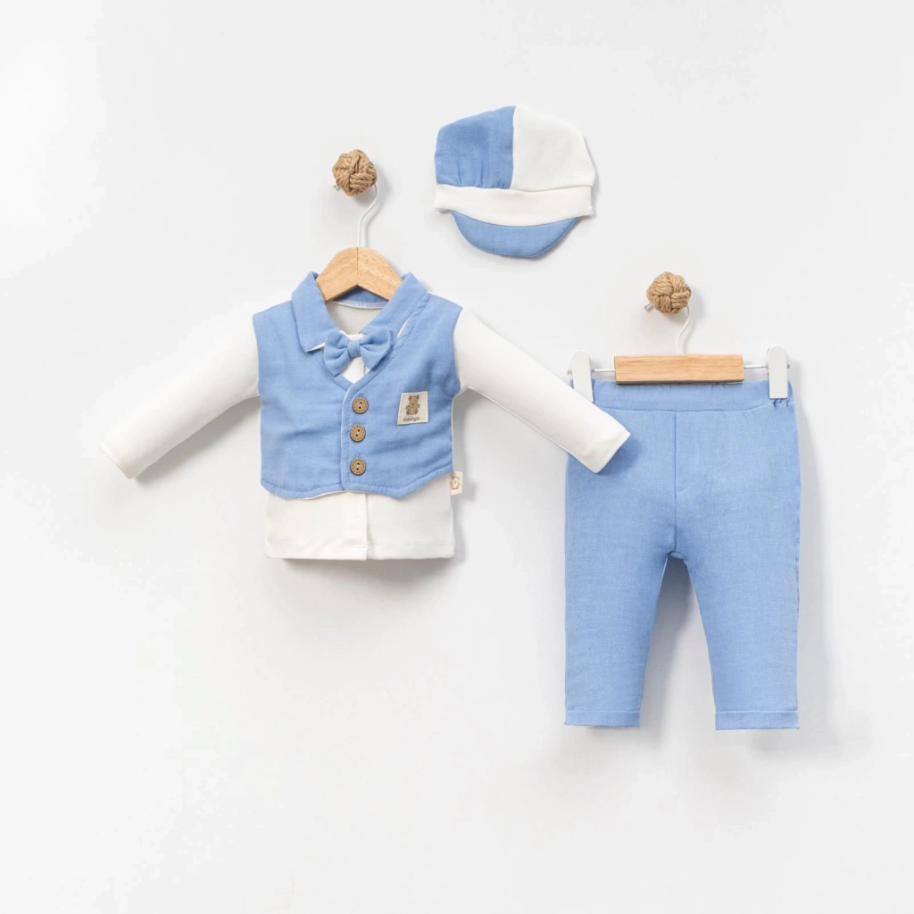 6-9-12-18 Ay Yelek Detaylı Kasketli Uzun Kollu Mevsimlik 3 Lü Erkek Takımı
